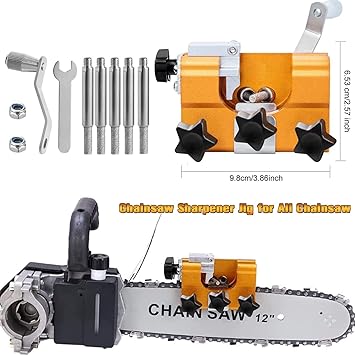 【Nasıl kullanılır】-Zincirli testerenizi yeni gibi keskin hale getirmek için zincirli testere zinciri taşlama fikstürünü kullanın, işinizi daha fazla zaman kazandıran ve emek tasarrufu sağlayan hale getirin! Bir kalemtıraş kadar kullanımı kolaydır; sadece kelepçeyi çubuğa yerleştirin, tırnağı dişin üzerine yerleştirin, çapağı kılavuz kovanına yerleştirin ve kolu çevirin.
