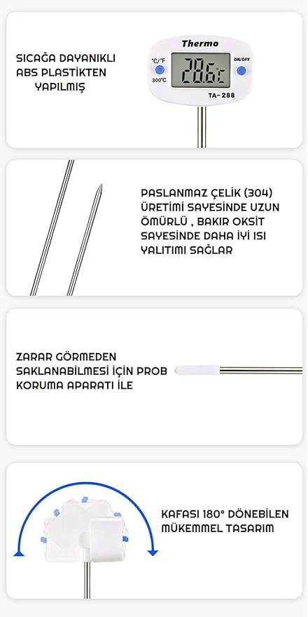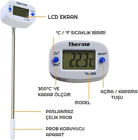 Thermo Ta-288 Oynar Başlıklı Dijital Mutfak Yemek Termometresi Paslanmaz Çelik Sıcaklık Ölçer