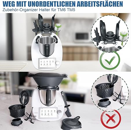 Thermomix TM6 aksesuar düzenleyici tutucu, kapak/spatula/karıştırma çubukları/temizlik fırçalarının yerleştirilmesi için çok fonksiyonlu stant