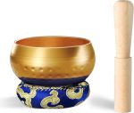 Tibet Şarkı Kase Seti, Farkındalık ve Stres Giderici zen dekor, Şifa ve Farkındalık için Nepal’de El Yapımı Kase (altın, 3 inç)