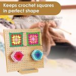 Pratik ve rahat: Tığ işi blok boyutu 29 cm / 11 inç x 29 cm / 11 inç, 3 mm çaplı delikler, 30 adet paslanmaz çelik çubuk pim ve kompakt ahşap taban. Bu set tığ projeniz için çok uygundur.