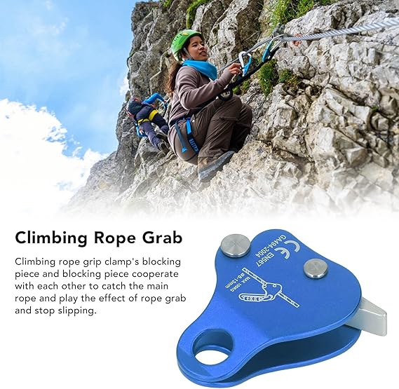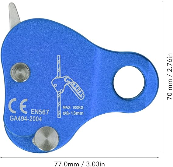 Tırmanma Halatı Kepçesi Alüminyum Alaşımlı Kendiliğinden Kilitlenen 8-13mm Açık Hava Tırmanışı için Tırmanma Halatı Kepçe Durdurucu Dağcılık Tırmanma Ascender Düşme(Mavi)