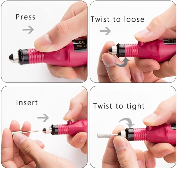 Paket içerigi 1 adet manikür pedikür makinesi 1 adet adaptör kaplosu 1 adet şarz aleti 6 adet metal uç 6 adet zımpara Özellikler Güç : 50-60hz Rpm : 3000 – 20000 Güvenlik 1. uç değiştiriken mutlaka cihazı prizden çekiniz