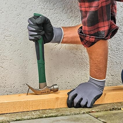 Tırnaklı çekiç 450 g (ekstra büyük darbe yüzeyi; sağlam karbon çelik; V şeklinde pençe; cam elyaf çekirdekli rahat yumuşak sap; düşük titreşim)