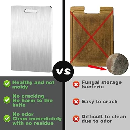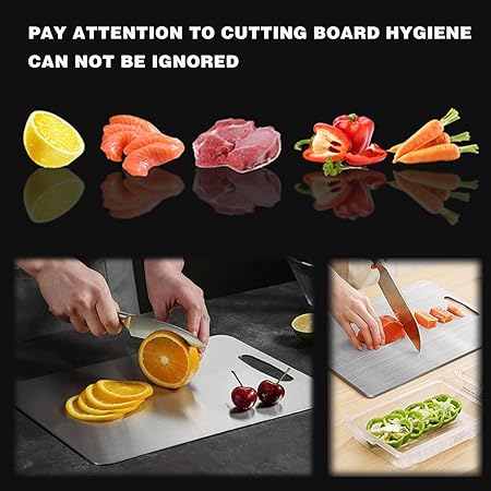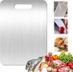 Titanyum kesme tahtası, kesme tahtası, paslanmaz çelik, 34 x 23 cm, titanyum kesme tahtası, çift taraflı gıda sınıfı kesme tahtası, kolay temizlenir, et, sebze, meyve için kesme tahtası