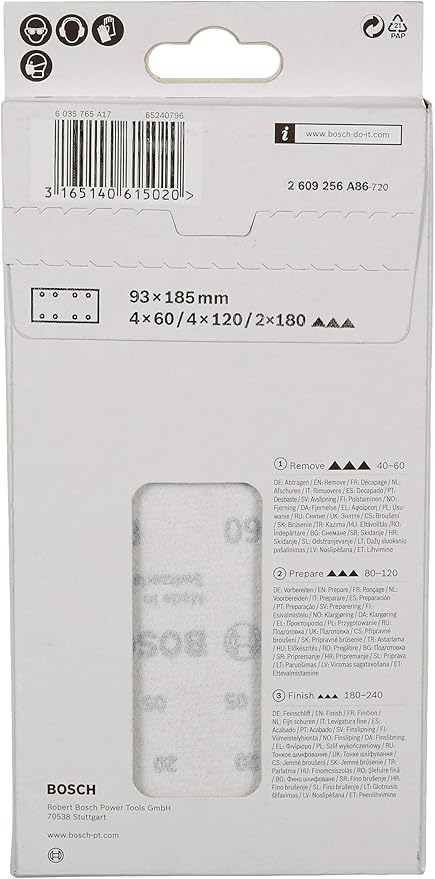 Titreşimli Zımpara Kağıdı 10’lu Set, 93, 185 mm 60/120/180 Kum 8 Delik, Gri