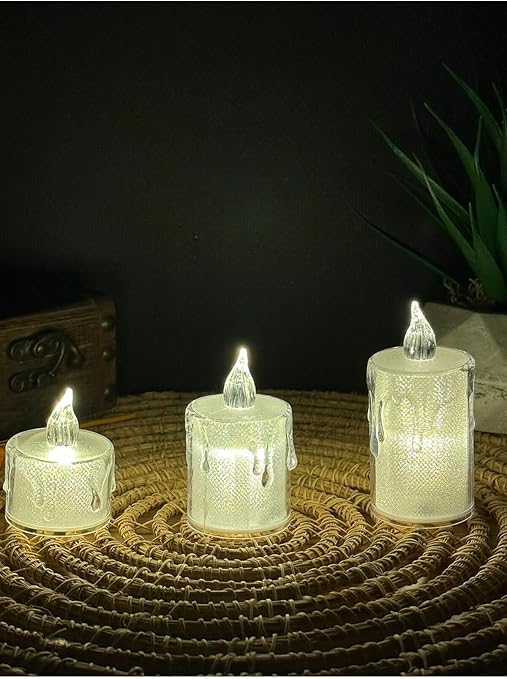 Titreyen Alevli Kristal Erimiş Led Mum 3’Lü Hareket Alevli Eriyen Yapay Mum Pilli Led, Sarı, Mum1002