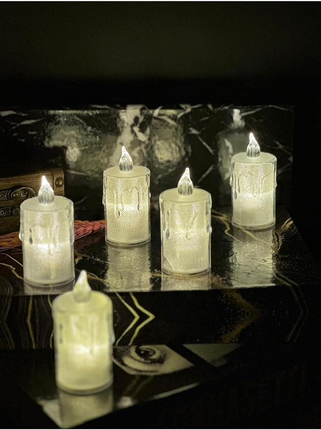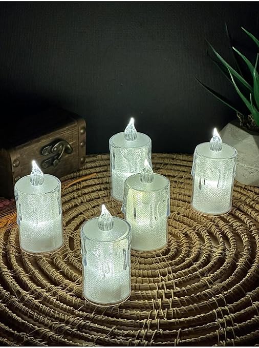 Titreyen Alevli Kristal Erimiş Led Mum 5’Li Hareket Alevli Eriyen Yapay Mum Pilli Led