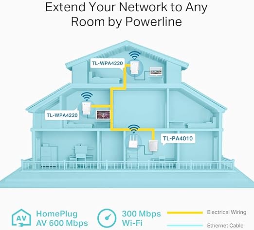 TL-WPA4220T KIT, AV600 300Mbps Kablosuz Tak Kullan 2 LAN Portlu 300m Mesafeli Menzil Genişletici 3’lü Powerline Adaptör