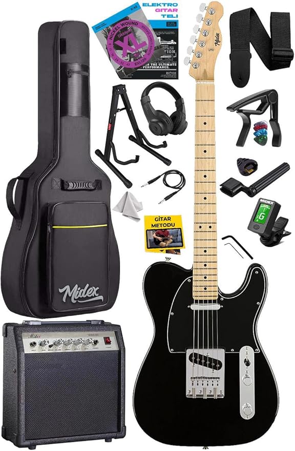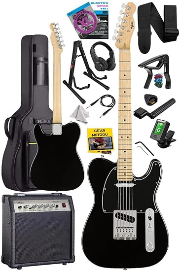 TLX-50BK-30AMP Tele Kasa Maple Klavye 2 Single-Coil 30W Amfili Elektro Gitar