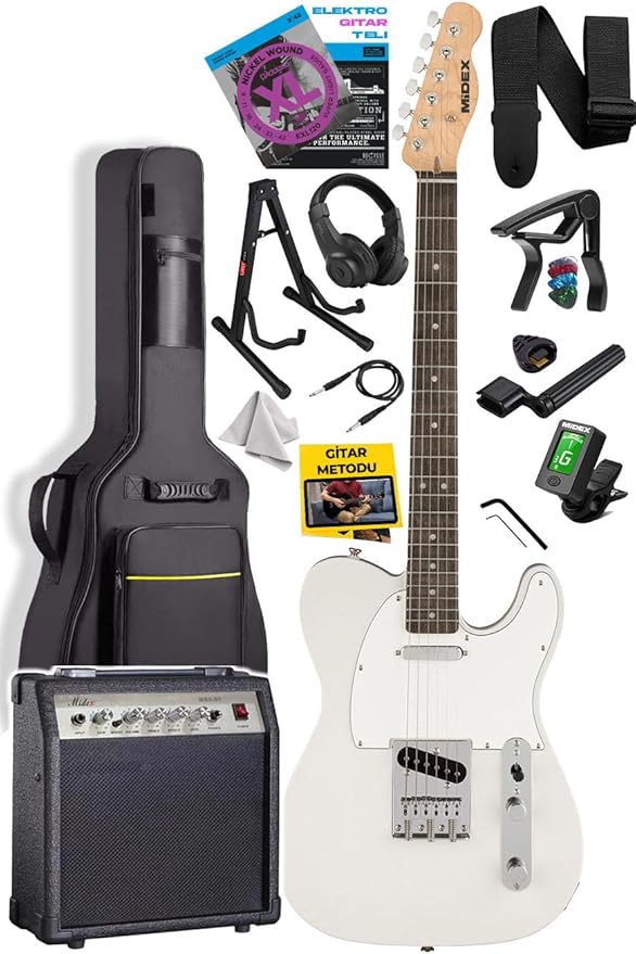 TLX-50WH-30AMP Tele Kasa Gül Klavye 2 Single-Coil 30W Amfili Elektro Gitar