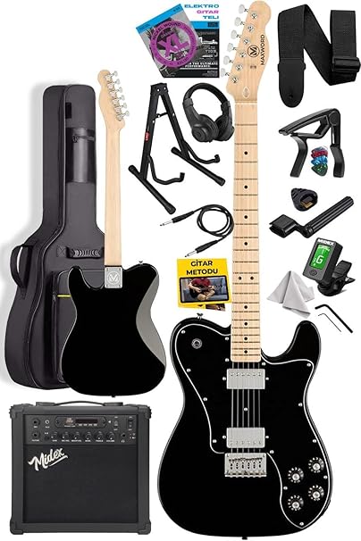 TLX-60BK-25AMP Telecaster Maple Klavye HH 25W Amfili Elektro Gitar Seti