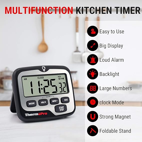 Saat Modu ve Çoklu Yerleştirme Seçenekleri. Pişirme zamanlayıcısı, geçerli zamanı gösteren bir saat olarak da kullanılabilir. Farklı ihtiyaçlarınız için 12/24 saat formatı olarak ayarlayabilirsiniz. Elektronik zamanlayıcının arkasındaki güçlü mıknatıs sayesinde buzdolabına ve fırına takılabilir. Veya katlanır masa sehpası ile istediğiniz yere yerleştirebilirsiniz.
