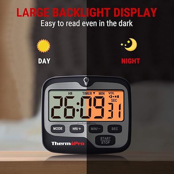 Büyük Rakamlar ve Arkadan Aydınlatmalı LCD Ekran. Bu dijital mutfak zamanlayıcısı, büyük rakamlara sahip 6,5 x 2,7 cm’lik geniş bir LCD ekrana sahiptir, odanın diğer ucundan sadece bir bakışta mevcut zamanlayıcıyı kalın rakamlarla kolayca okuyabilirsiniz. Arka ışık ile karanlıkta bile okumak daha kolay olacaktır.