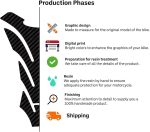 Çıkartmalarımızın yapıştırıcısı motosikletin yüzeyine mükemmel yapışmayı garanti eder. Motosikletinizin yeterli korumasını sağlamak için elle uygulanan reçine. Çıkartmalarımız yıkamaya, neme, darbelere, çizilmelere, aşınmalara, dona dayanıklıdır ve -20 dereceye kadar düşük sıcaklıklardan korkmaz.