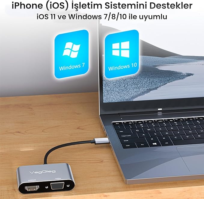 Uyumluluk: Windows 7/8/10, iOS 11 ve üzeri; PC, dizüstü bilgisayar, monitör, TV ve projektörler Malzeme: Sağlam ve dayanıklı dış yapı