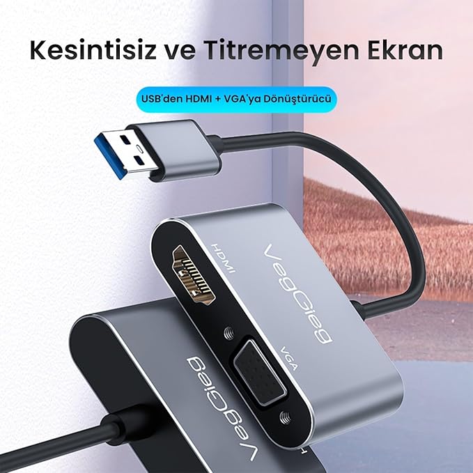 Model Kodu: V-Z918 Giriş: USB (Erkek) Çıkışlar: HDMI (Dişi) ve VGA (Dişi)