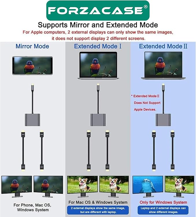 İşletim Sistemi Sınırı nedeniyle, her iki ekran için görüntü aynı görüntülenir.Kısa sürede HD aktarımı kolaydır. Type-C Tipi PD şarjı 60W’a kadar hızlı bir şekilde çıktı alır.