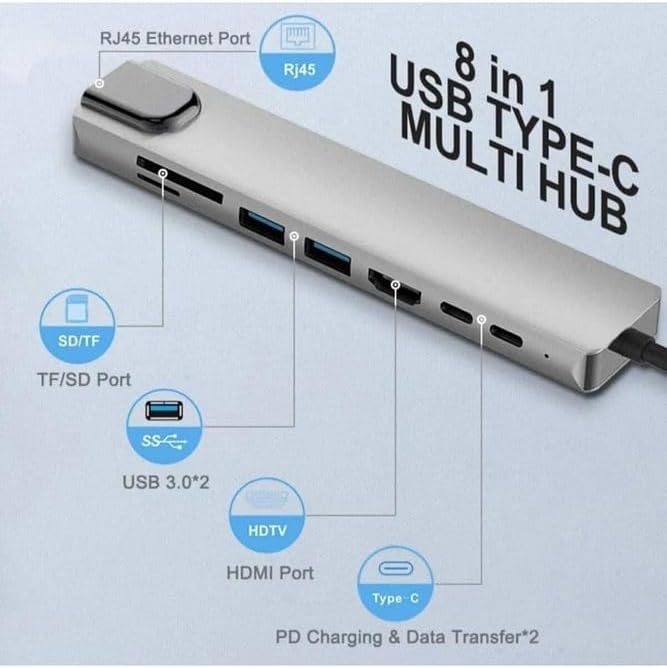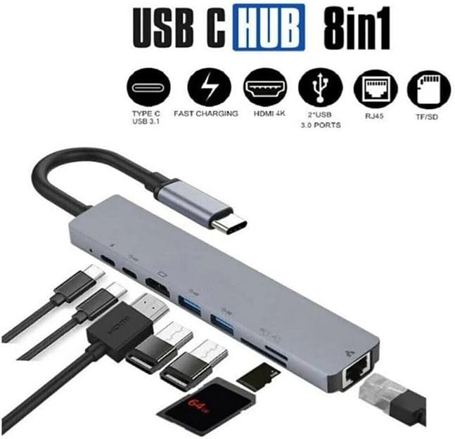 To Hdmi Ethernet Typec Hub 8in1 Port Çoklayıcı Macbook Ile İle Uyumlu Çoğaltıcı Type C To Usb Converter Hub Typec Ethernet hdmi Sd kart Usb Typec Çevirici