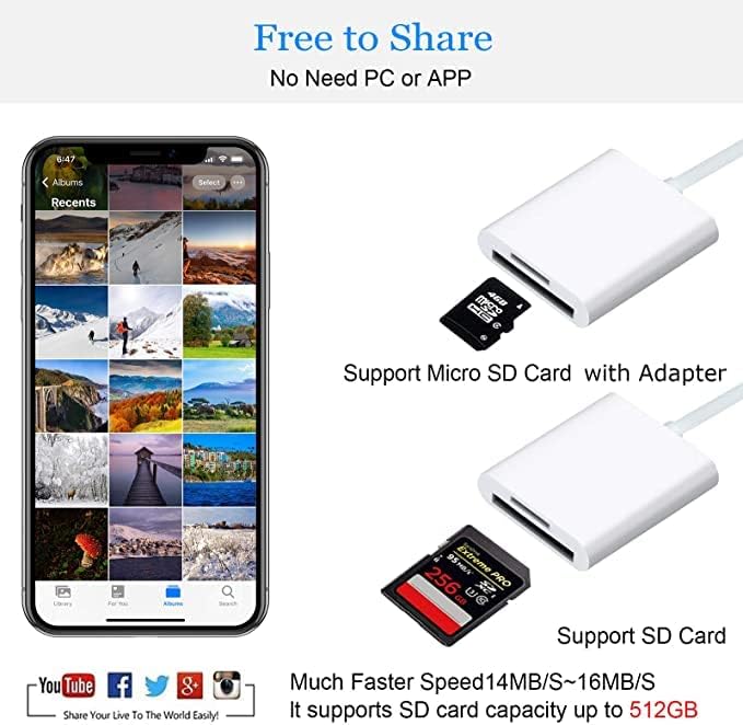 To SD Card Camera Reader Kablo iPhone 11 12 13 14 Uyumlu SD Micro SD Kart Okuyucu Kablo Adaptör