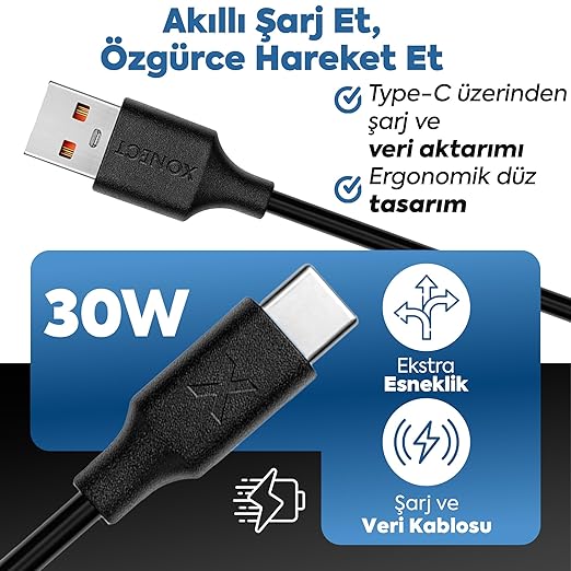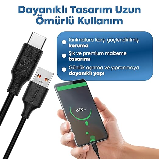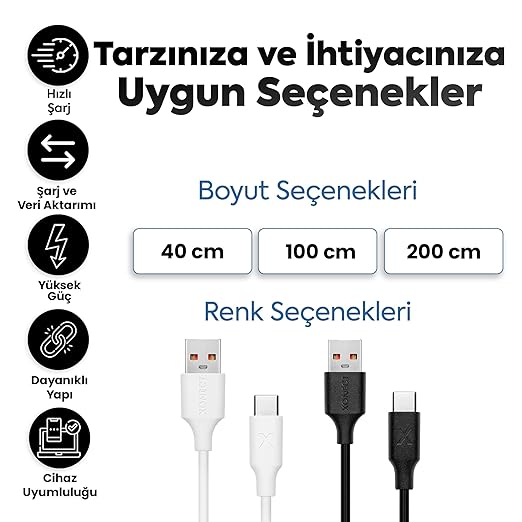 ⚡ Cihazlarınızı şarj etmek için alışık olduğunuz standart boy şarj kablosu.