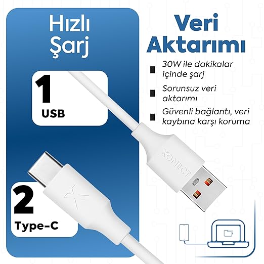 ⚡ Type-C bağlantı noktasına sahip bütün cihazları şarj etmek ve data aktarımı yapmak için kullanabilirsiniz.