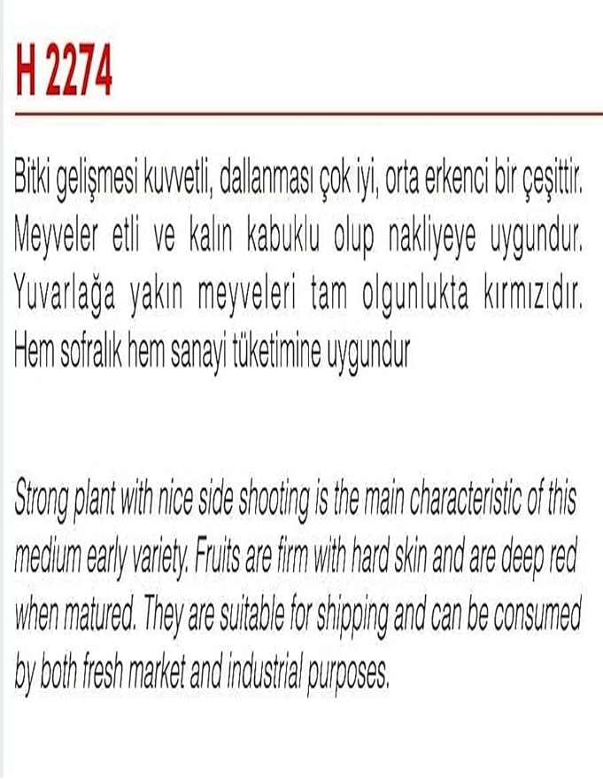 Çeşit iri meyvelidir ve içi etli dolgun bir çeşittir.