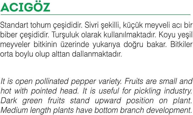 Kurutmalık, turşuluk, kırmızı pul biber ve taze tüketim olarak kullanıma uygundur.