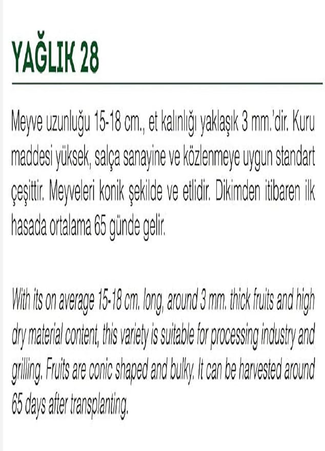 Turşuluk, yağlık, kurutma, mangalda ve taze tüketim olarak kullanıma uygundur.