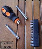 Tombul Kısa Tornavida Seti 13 Parçalı Bits Uzatma Seti 1/4 Hex Yıldız Düz