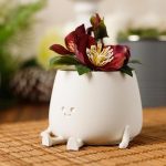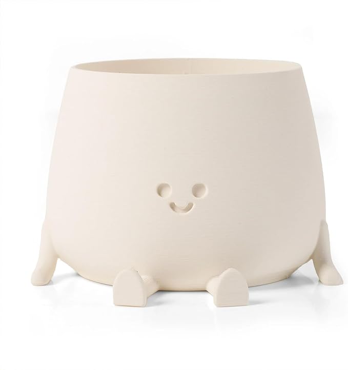 Tombul Oturan Gülen Yüz Saksı Bioplastik Güler Yüzlü Sukulent Saksısı (Beyaz, Büyük)