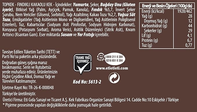 Topkek Fındıklı Kakaolu Kek 35 g x 24 Adet