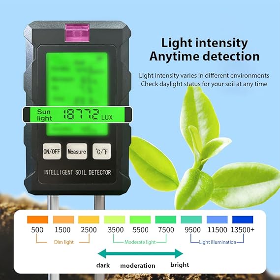 【Kapsamlı Toprak Testi】: 6’sı 1 arada toprak test cihazımız, doğurganlık, pH, sıcaklık, nem ve ışık maruziyeti hakkında doğru veriler sağlar. Bu kapsamlı araç, bitkinizin optimum büyüme için doğru miktarda besin, su ve güneş ışığı almasını sağlar.