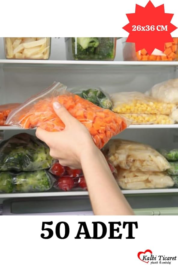 Torba 26×36 Cm 50’li Kilitli Buzdolabı Poşeti Şeffaf Naylon Torba Kilitli Saklama Poşeti