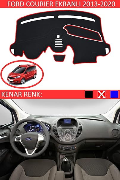 Torpido Koruma Halısı Siyah Kenar Renk Kırmızı Ford Courier Ekranlı 2013-2020 ile uyumlu