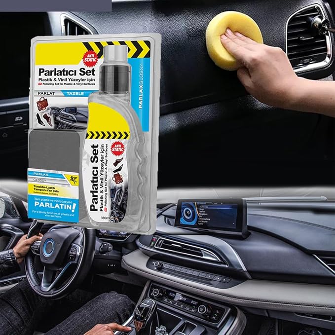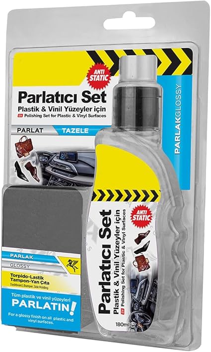 Tampon, torpido, kapı, kauçuk döşemeler dahil aracınızdaki tüm iç ve dış plastiklerde kullanılabilir. 180 ml’dir. Süngerli set olarak gönderilmektedir.
