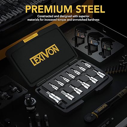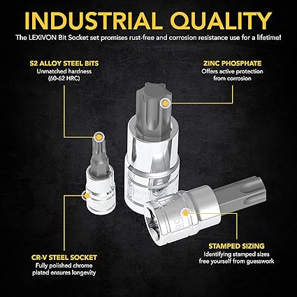 Torx Bit Lokma Anahtar Seti, Boyutlar: T8, T10, T15, T20, T25, T27, T30, T40, T45, T47, T55, T60 Torx Vidaları için Bit Seti, Sürücü Boyutu: 1/4″, 3/8″, 1/2″ (LX-143)