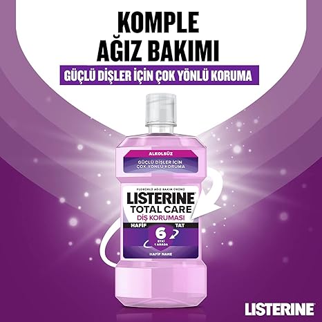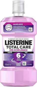total care, diş koruyucu, 6 etkili florürlü ağız bakım ürünü, hafif tat, sıfır alkol, nane aromalı, 250ml