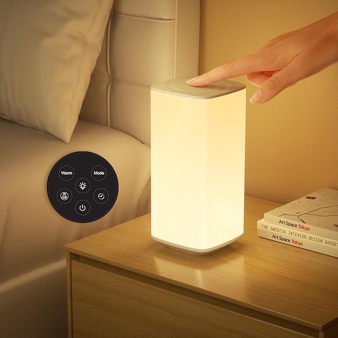 Touch Kısılabilir Başucu Lambası, Uzaktan Kumandalı LED Masa Lambası, Pille Çalışan 256 Renk ve 3 Modlu Gece Lambası Çocuk Atmosfer Masa Lambası, Yatak Odası Oturma Odası için Zamanlayıcı Fonksiyonu
