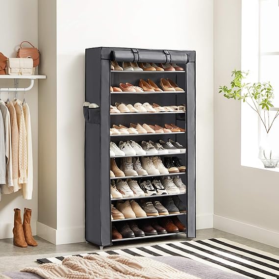 İşte SONGMICS ayakkabı rafı! Kumaş örtü, ayakkabı saklamayı kolaylaştıran bir fermuar ve cırt cırtlarla donatılmıştır.