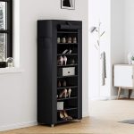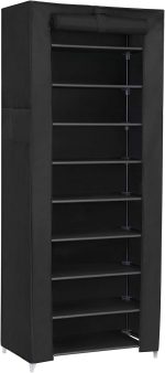 Toz Geçirmez Örtülü 10 Katlı Metal Ayakkabı Rafı, Siyah, RXJ10H