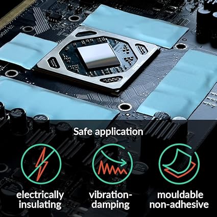 YÖNLÜ UYGULALAR: Isı ileten, titreşim sönümleme, kalıplanabilir, elektriksel olarak yalıtılabilir – kolayca kesilebilir. R, yonga seti, PC, dizü bilgisayar, konsol, grafik kartları için ideal