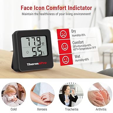 Yüz Simgesi Konfor Göstergesi: Oda sıcaklığı monitörü, mevcut hava koşullarını görsel olarak bilgilendirmek için KURU/KONFOR/ISLAK temsil eden üç yüz simgesini ortadan kaldırır, sağlığınızı daha iyi korumak için nemlendiricinizi hızla ayarlar