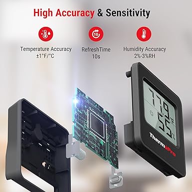 Yüksek Doğruluk ve Hızlı Yenileme Hızı: Sıcaklık nem göstergesi, +/-65 ° F ve +/-% 2 ila% 3 Bağıl H’ye kadar hassasiyete ve 10 saniyeye kadar yenileme hızına sahip yüksek performanslı bir nem sıcaklık sensörü ile donatılmıştır