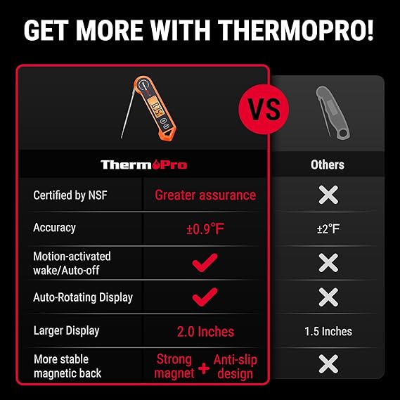 3-4 saniye ultra hızlı tepki süresi, ± 0,9’a kadar yüksek hassasiyet, anında okunan et termometresi, pişirme termometresi ile her türlü gıda sıcaklığını ölçmek için uygun 4,3 inç gıda sınıfı paslanmaz çelik prob içerir