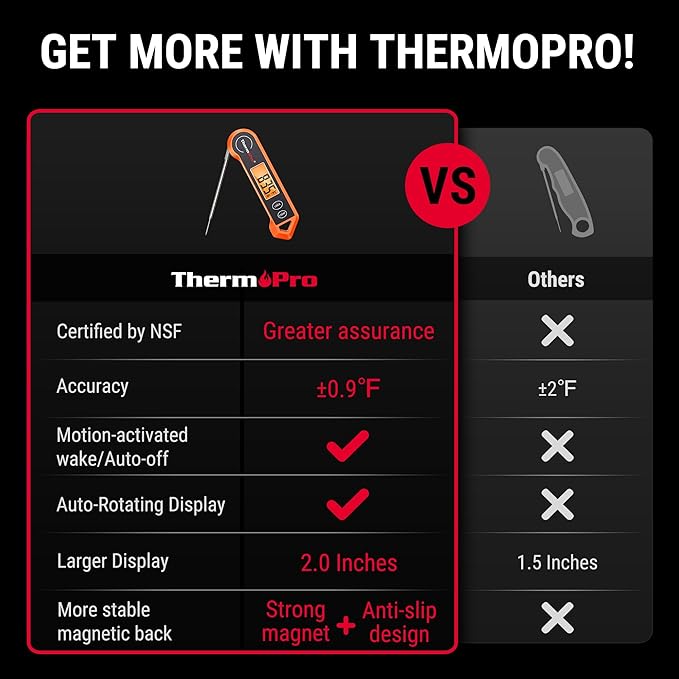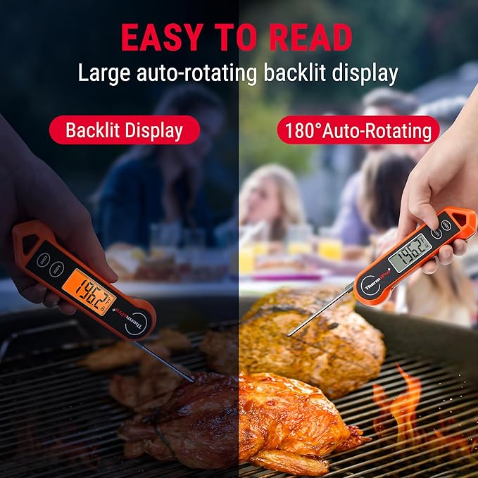 TP19H Su Geçirmez Dijital Et Termometresi, Otomatik Dönen Işıklı Ekran, Hareket Sensörlü Hızlı Okuyan prob