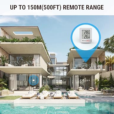150m Uzak Mesafe: 500 ft’ye kadar kablosuz iletim mesafesi (engelsiz) ile bu dış mekan termometresi, iç ve dış mekan sıcaklığını izlemenizi sağlar