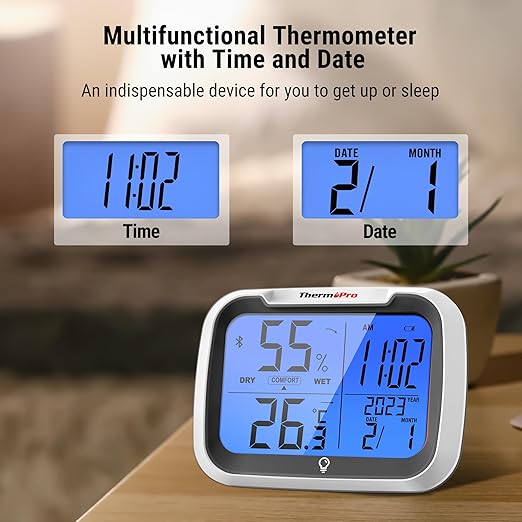 【80 Metre Bluetooth Menzili ve Uygulama Desteği】 Kontrol parmaklarınızın ucunda. Gelişmiş Bluetooth çipi, verileri 80 metre mesafeye kadar telefonunuza aktarır. Uygulama üzerinden sıcaklık ve nem için alt/üst limit alarmları kurabilir, ortam belirlediğiniz değerlerin dışına çıktığında telefonunuza bildirim alabilirsiniz.