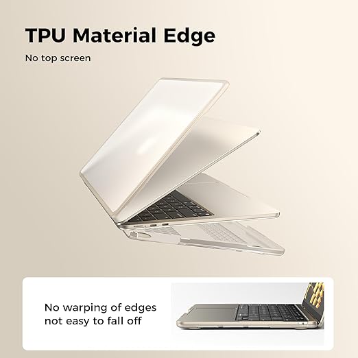 Darbeye dayanıklı TPU kenar + sert PC kılıf. TPU kenarının takılması ve çıkarılması kolaydır. Polikarbonat-plastik kılıf MacBook’u çepeçevre koruma için tamamen sarar, böylece günlük darbeler etkilenmez