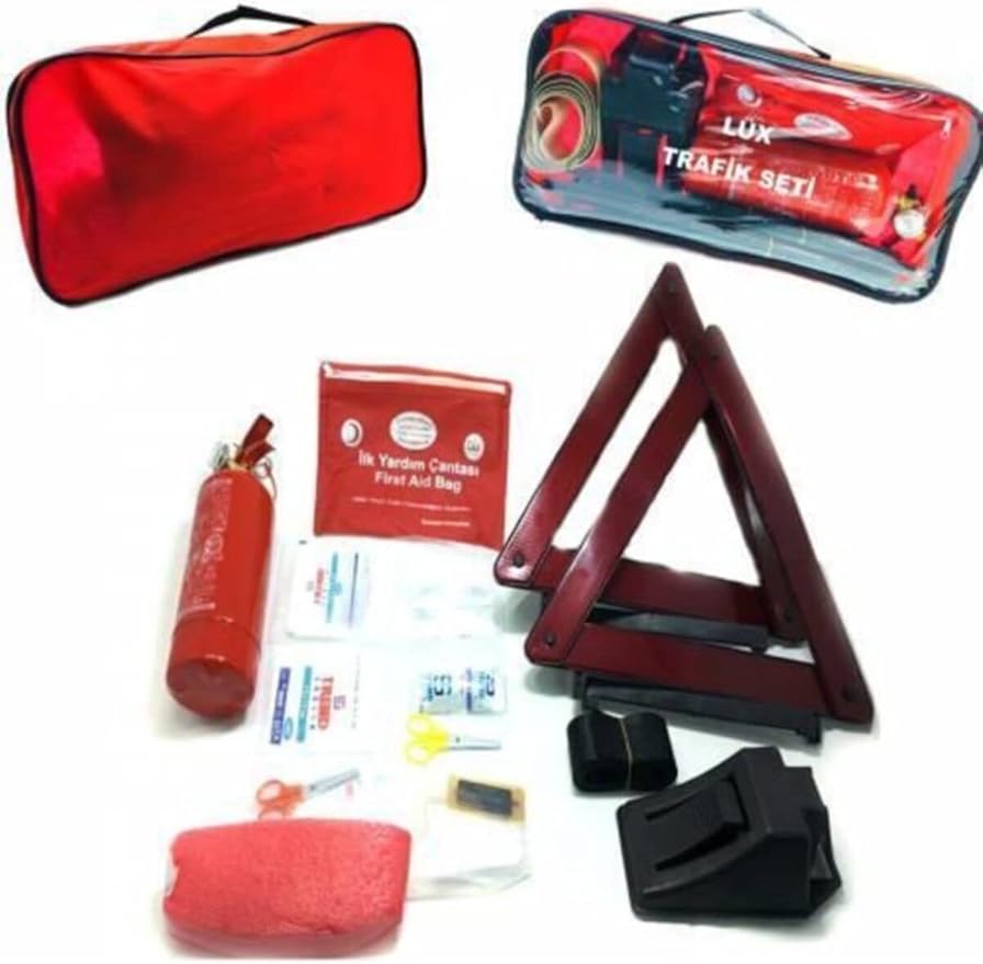 Trafik Seti Profesyonel Araç Muayene İle Uyumlu Ilk Yardım Seti Tüv Türk İle Uyumlu Kare Çantalı